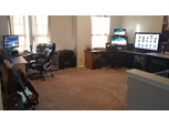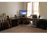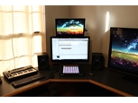 Ableton DAW with three monitors, one 28", one 21.5" and one 42" TV. The TV makes editing a LOT easier on the eyes and also makes it easier to collaborate with others. I also recently added two homemade speaker monitor stands I made from PVC which bring the monitors up to ear level.